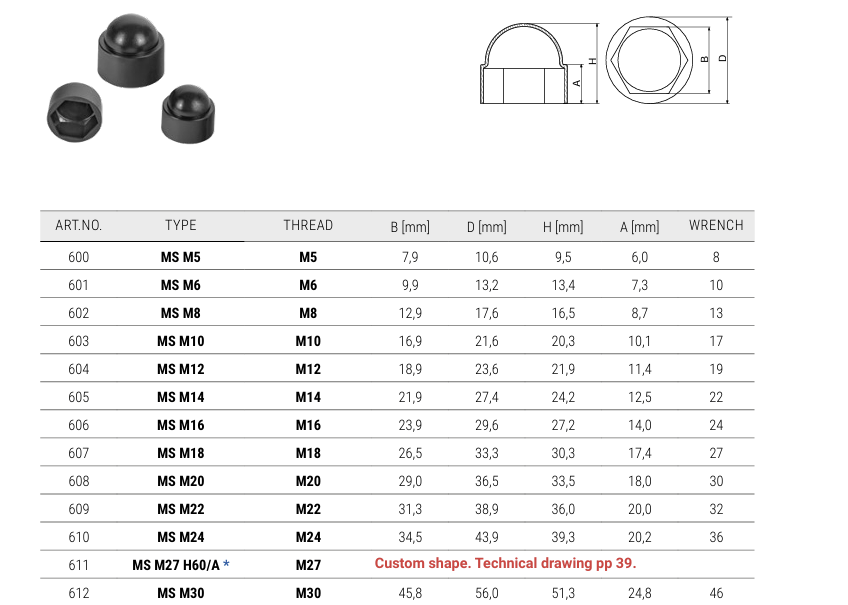 -caps (plugs) for bolts, screws, nuts (hexahedron)