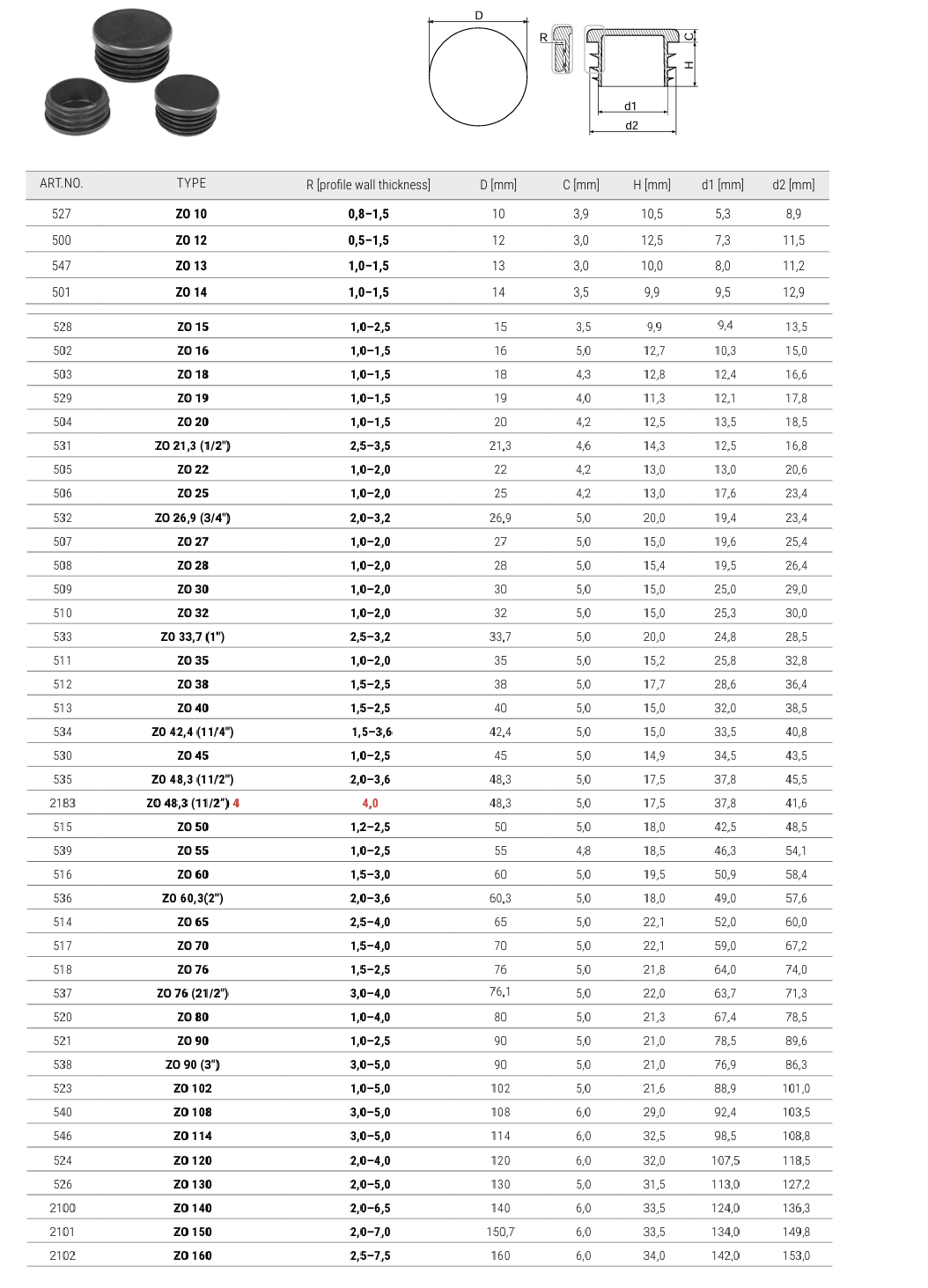 The most common pipes have the following section - round. All plastic plugs are marked exactly like pipes. The outside dimension of the pipe corresponds to the marking of the plug. This is done so that the plugs can be easily selected according to the same size.