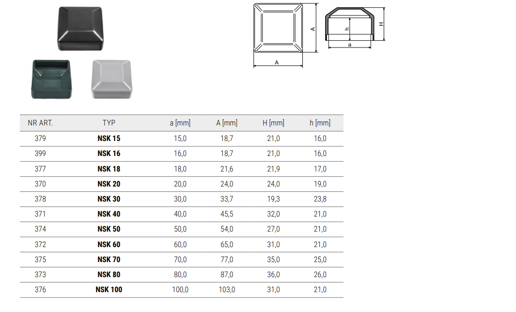 For example: external diameter (outside size) of tube 60x60mm then size of plugs=60x60mm